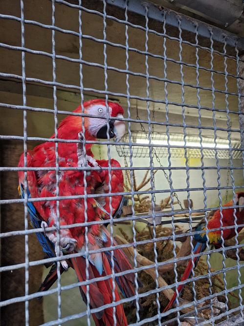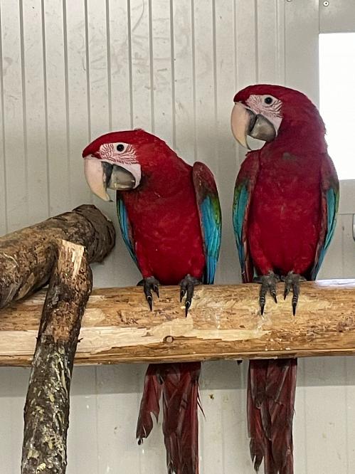 1,1 Hellrote Aras, 1,0 NZ 16, 0,1 NZ 21, beide flugunfähig, hatten jeweils Eier mit anderen Partnern, neu verpaart; nur Abholung